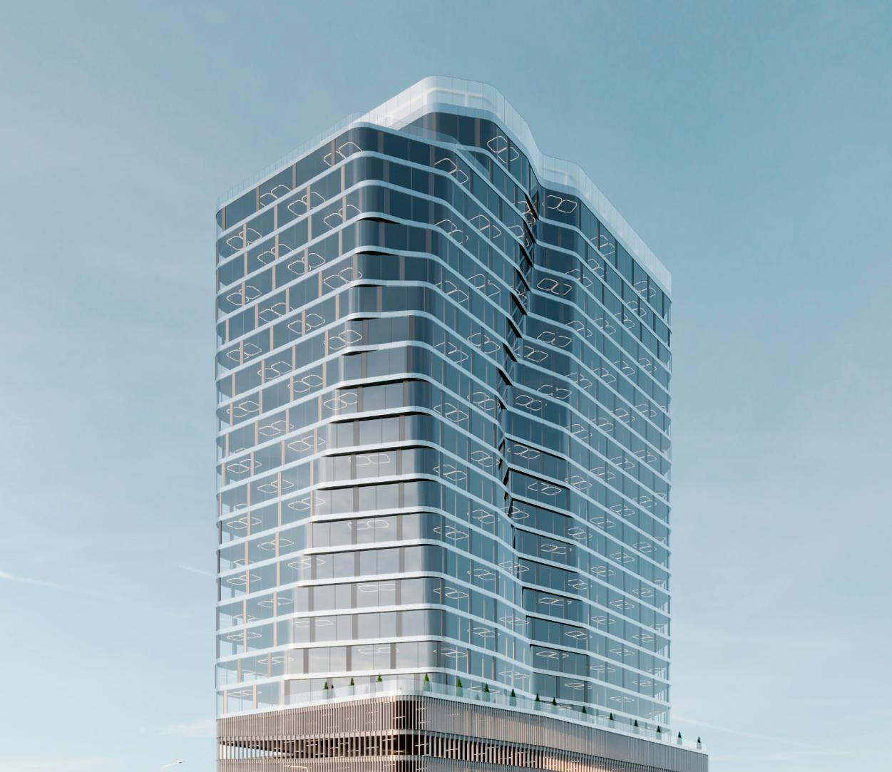 Фасадная композиция, выполненная в утонченной урбанистической эстетике, завораживает игрой света и тени. Керамические панелиблагородных оттенков в сочетании с зеркальным остеклением создают эффектный образ, который меняется с каждым движением солнца.